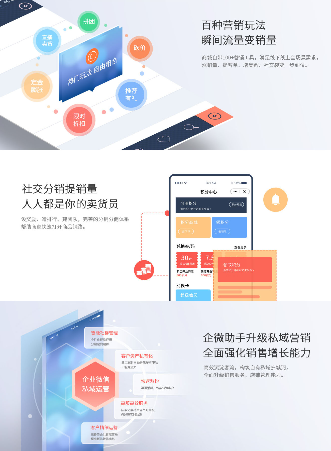 通過特殊的分銷分利玩法,快速建立分銷網(wǎng)絡(luò),將導(dǎo)購變身渠道,實(shí)現(xiàn)銷售裂變,擴(kuò)大銷售渠道。
