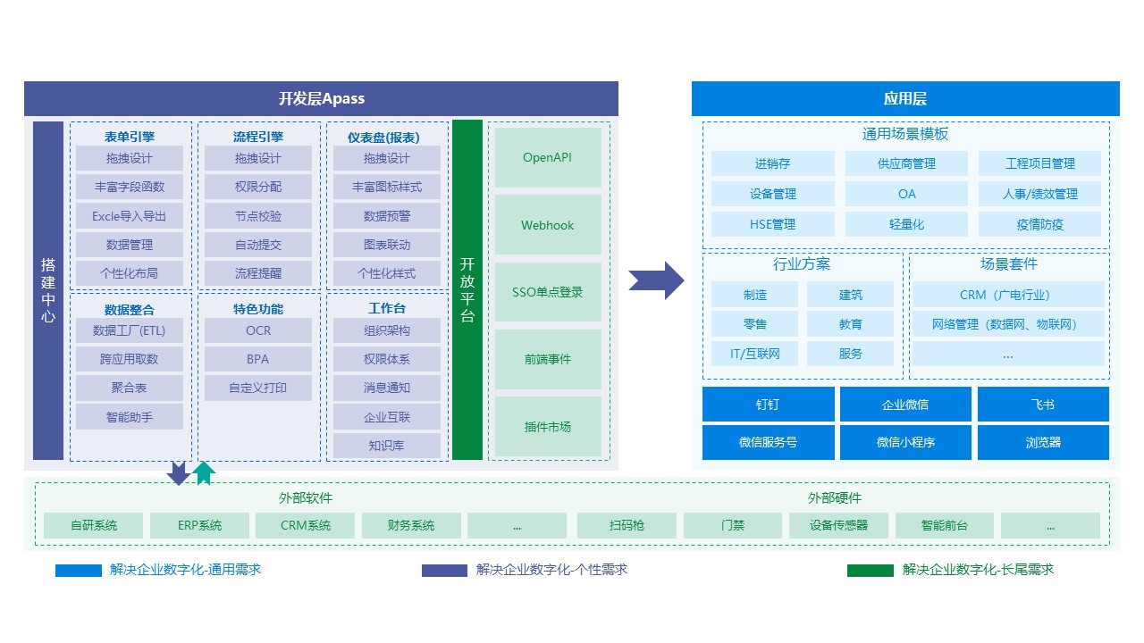 現(xiàn)代企業(yè)建設(shè)了很多信息系統(tǒng),無(wú)形中形成了許多數(shù)據(jù)“煙囪”,成為數(shù)字化轉(zhuǎn)型中“最后一公里”的溝壑。低代碼平臺(tái)通過(guò)重塑開(kāi)發(fā),打通數(shù)據(jù),優(yōu)化流程,消除系統(tǒng)間的屏障,提高了企業(yè)內(nèi)部協(xié)作和管理效率,更好地利用現(xiàn)有資源,讓業(yè)務(wù)更加靈活,加速數(shù)字化轉(zhuǎn)型。