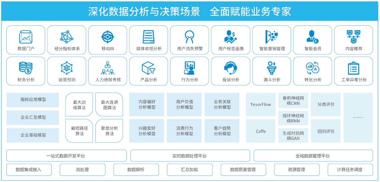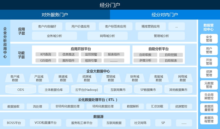 經(jīng)營分析平臺是基于數(shù)據(jù)倉庫、聯(lián)機分析處理(OLAP)和數(shù)據(jù)挖掘等技術(shù)構(gòu)建的數(shù)據(jù)管理平臺,它具備先進的技術(shù)架構(gòu),打通和融合企業(yè)全方位數(shù)據(jù)源,致力于為客戶構(gòu)建業(yè)務(wù)中臺+數(shù)據(jù)中臺“雙核心”能力平臺,為企業(yè)提供統(tǒng)一的數(shù)據(jù)服務(wù)支撐,洞察隱藏在數(shù)據(jù)背后的問題或機遇。