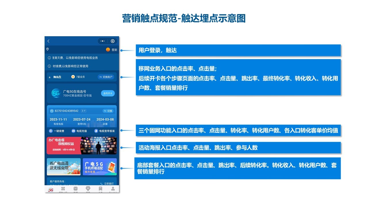規(guī)范營銷觸點,確保用戶在各個接觸點上獲得一致的體驗。包括APP、網站、社交媒體、營業(yè)廳等。通過觸點規(guī)范化,提高用戶參與度和轉化率。